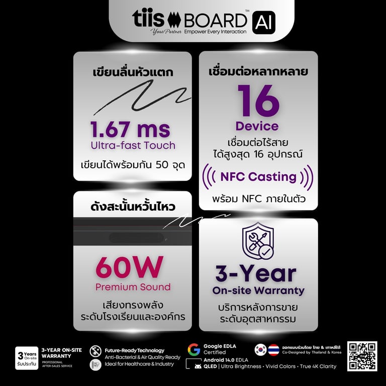 ผู้นำด้านจอสัมผัสอัจฉริยะประเทศไทย (Interactive Flat Panel) ที่ได้รับความไว้วางใจจากโรงเรียนและองค์กรทั่วประเทศ ด้วยเทคโนโลยีซอฟแวร์เกาหลีใต้ ที่มุ่งเน้นการพัฒนาประสิทธิภาพการเรียนรู้และการทำงานอย่างไร้ขีดจำกัด